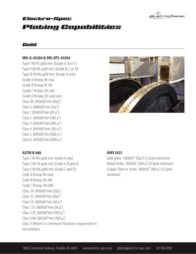 Electro-Spec’s innovative methods for plating include our ability to utilize Spouted Bed Electrode (SBE) for Gold, Nickel, Electroless Nickel, Palladium and Copper plating.